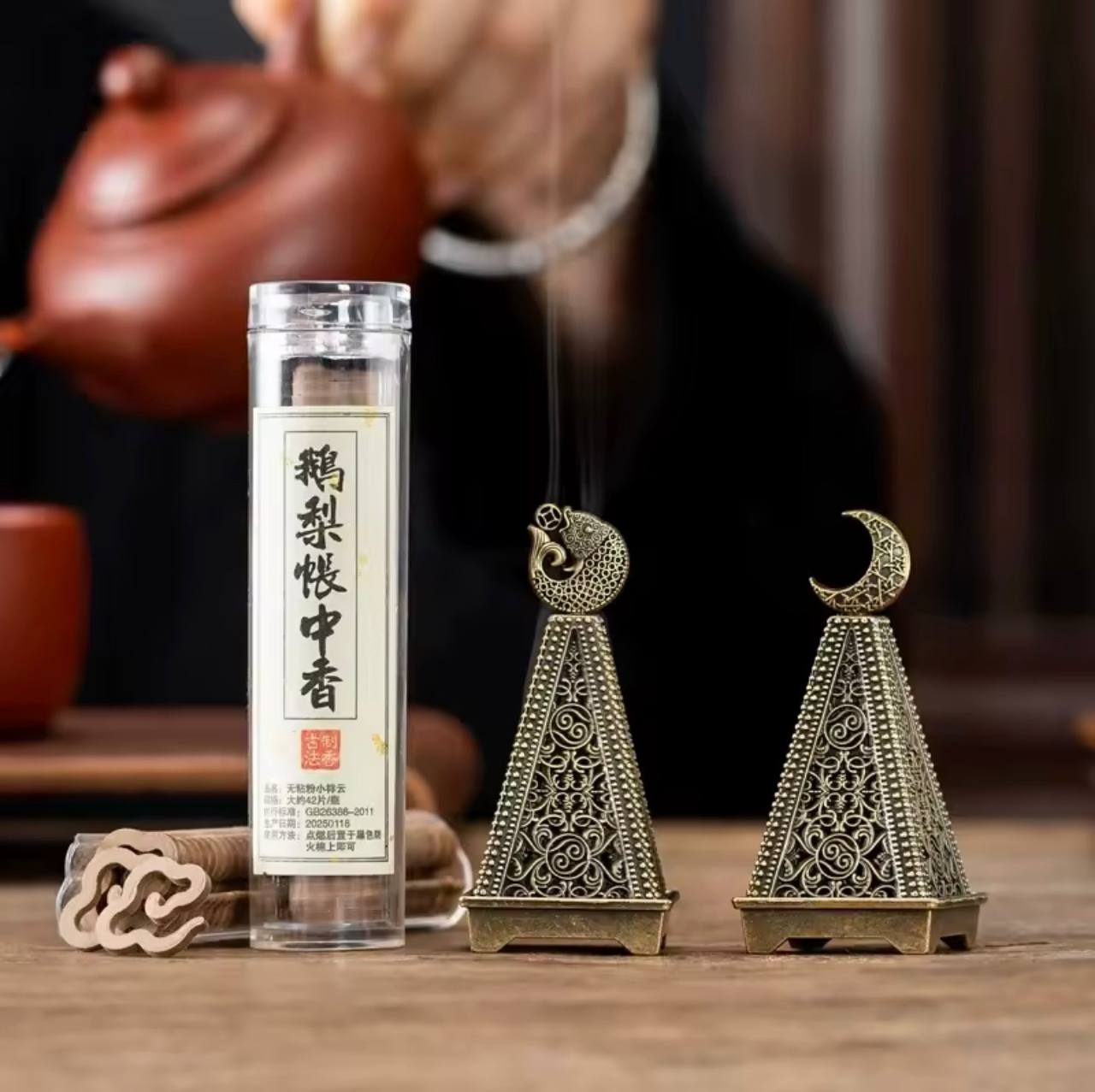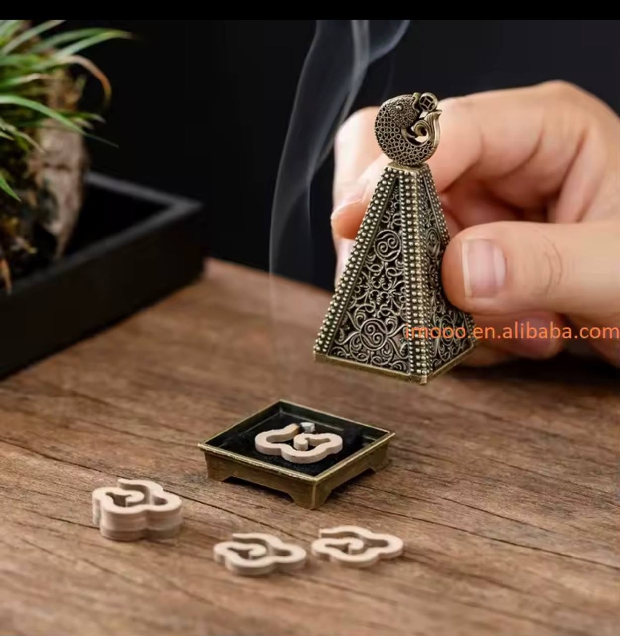 • معرفی: این جاشمعی هرمی با الهام از طرح‌های کلاسیک و جزئیات فیلگری، جلوه‌ای آنتیک و لوکس به فضای شما می‌بخشد. عملکرد بک‌فلو باعث می‌شود دود مخروط‌ها به‌صورت آبشاری و قابل مشاهده از نوک بیرون بیاید و جلوه‌ای شبیه مه یا آب ایجاد کند — تجربه‌ای بصری و آرام‌بخش که برای مدیتیشن، یوگا، اتاق خواب و اتاق پذیرایی عالی است.
