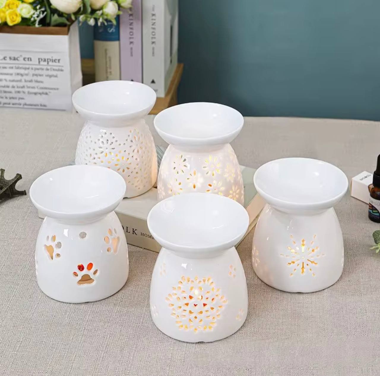 این وارمر سرامیکی سفید با برشهای تزئینی، ترکیبی از زیبایی و کاربردی بودن است. قسمت بالایی کاسهمانند برای قرار دادن روغن معطر یا موم ذوبشونده طراحی شده و در محفظه پایینی یک شمع تیلایت قرار میگیرد تا با گرمایش ملایم، عطر خانه را پخش کند. الگوی برششده هنگام روشن شدن شمع، نوری گرم و سایهپردازی زیبا خلق میکند — گزینهای ایدهآل برای دکوراسیون اتاق خواب، نشیمن، حمام یا هدیه.
