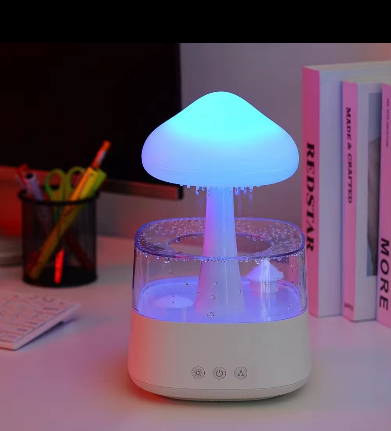 آبنما و چراغ خواب شبیه ساز باران طرح قارچ به همراه اسپیکر بلوتوثی