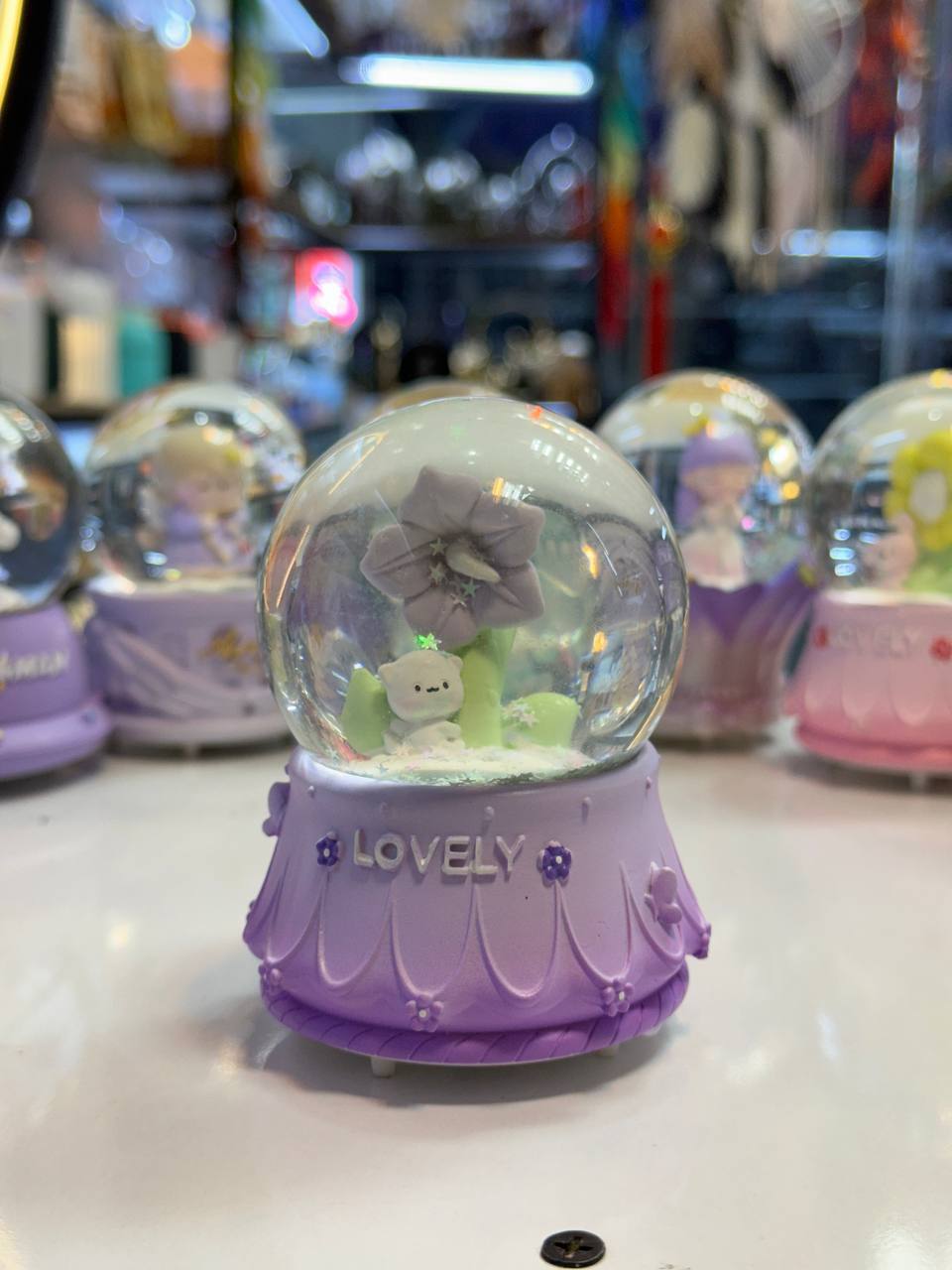 گوی شیشه ای طرح گل بنفش